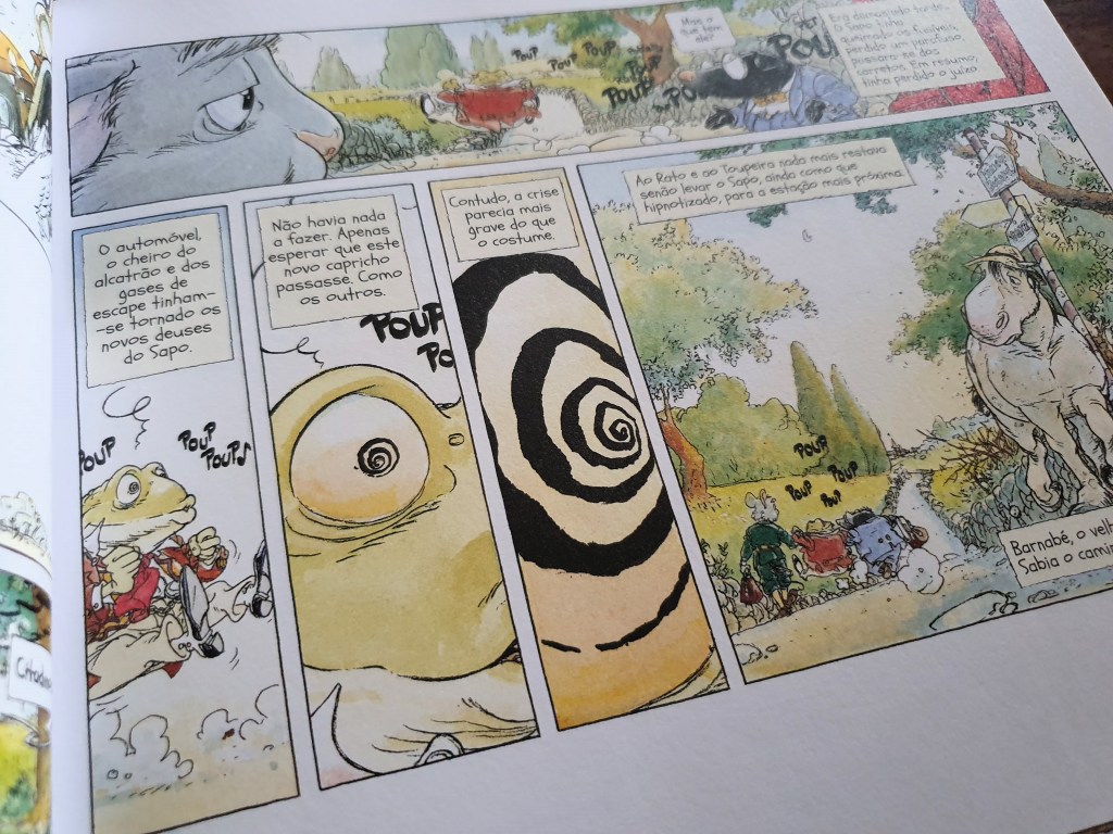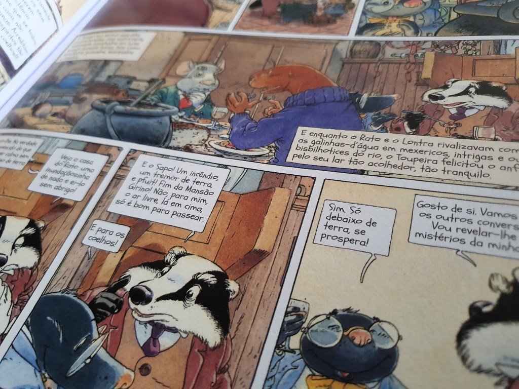 O Vento nos Salgueiros é um clássico da literatura juvenil da autoria de Kenneth Grahame. Adaptado para múltiplos formatos, entre eles, claro, a banda desenhada, foi lançado numa edição em quatro volumes e capa mole há vários anos. Já tinha começado a ler a série nessa edição mais antiga, mas ainda não tinha conseguido adquirir os quatro volumes. Felizmente, a Arte de Autor lançou recentemente uma edição integral que permite a leitura de toda a história, num formato de melhor qualidade.
