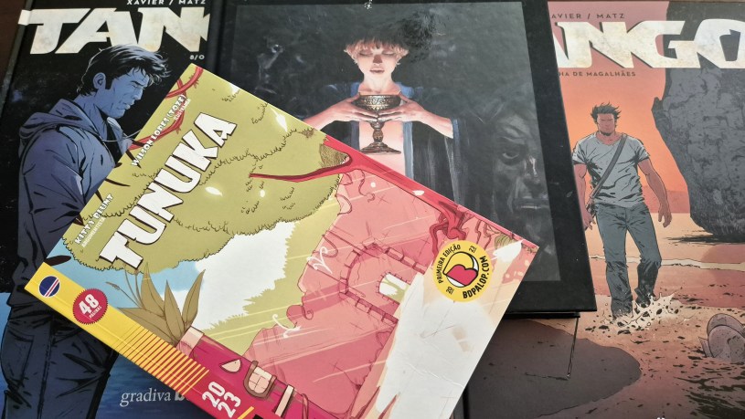 31 / 32 – Tango – Vol. 7 e 8 – Matz – De alguma forma senti que a história tem vindo a esmorecer, com estes dois volumes a levar a dupla central à procura de um item mítico. Claro que não serão os únicos interessados, mas a narrativa segue uma lógica mais relaxada e mais mirabolante, apesar de uma reviravolta que, apesar de esperada, quebra um pouco o padrão narrativo dos volumes anteriores. No global, é uma série que entrega o que se propõe, focando-se num homem que pretende fugir dos contornos violentos, e que vive de aventura em aventura, consequência de se meter, como bom samaritano, em situações em que não é chamado.
