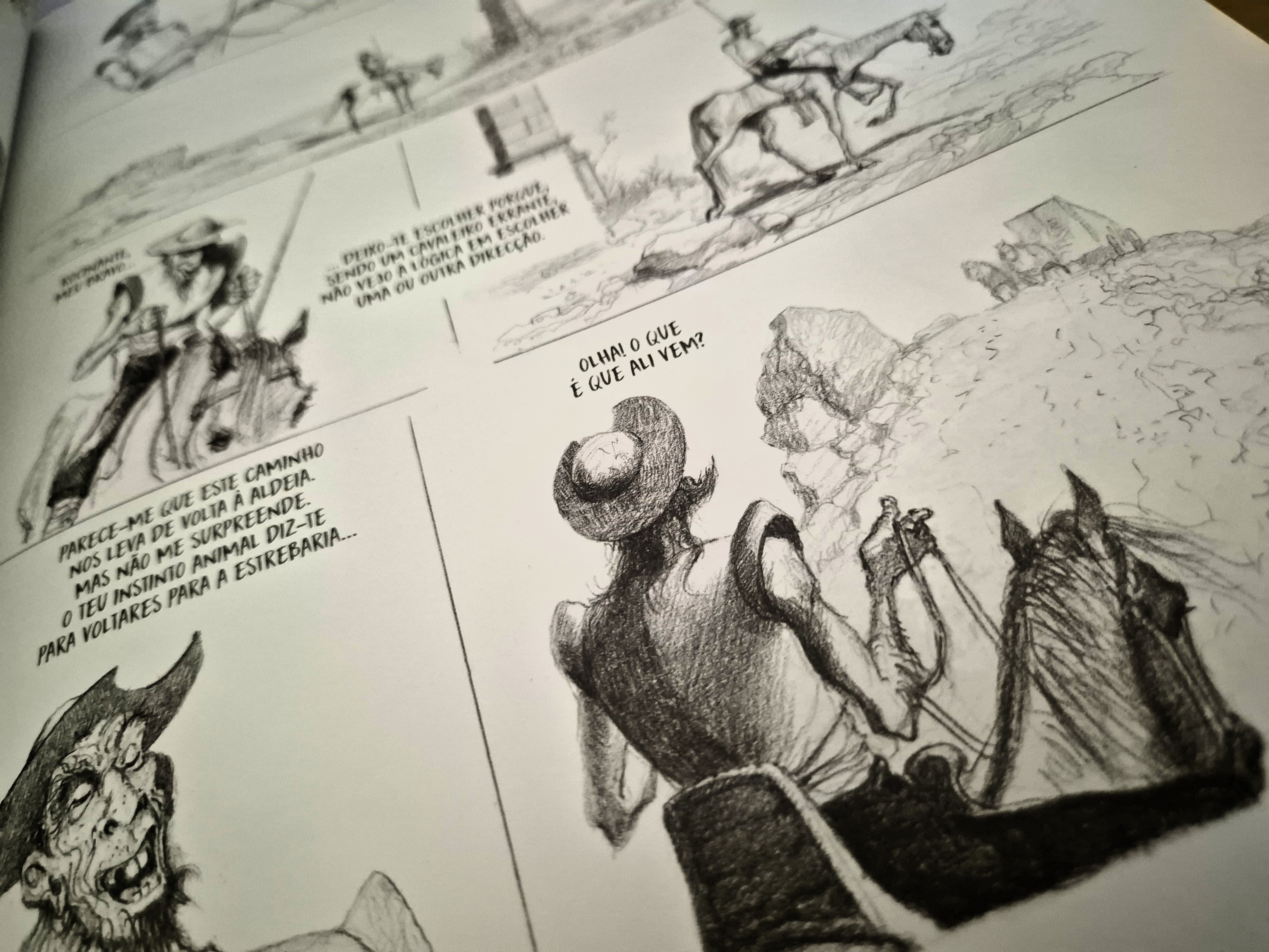 Esta não é a primeira adaptação de Dom Quixote de La Mancha para banda desenhada, publicado em Portugal. Há alguns (poucos) anos, foi lançada uma edição na colecção de Clássicos da Literatura em BD. Ainda que esta adaptação estivesse relativamente boa (e acima de outros volumes da colecção), esta adaptação de Paul e Gaetan Brizzi está, claro, bastante acima – principalmente na qualidade dos desenhos e na qualidade da edição.