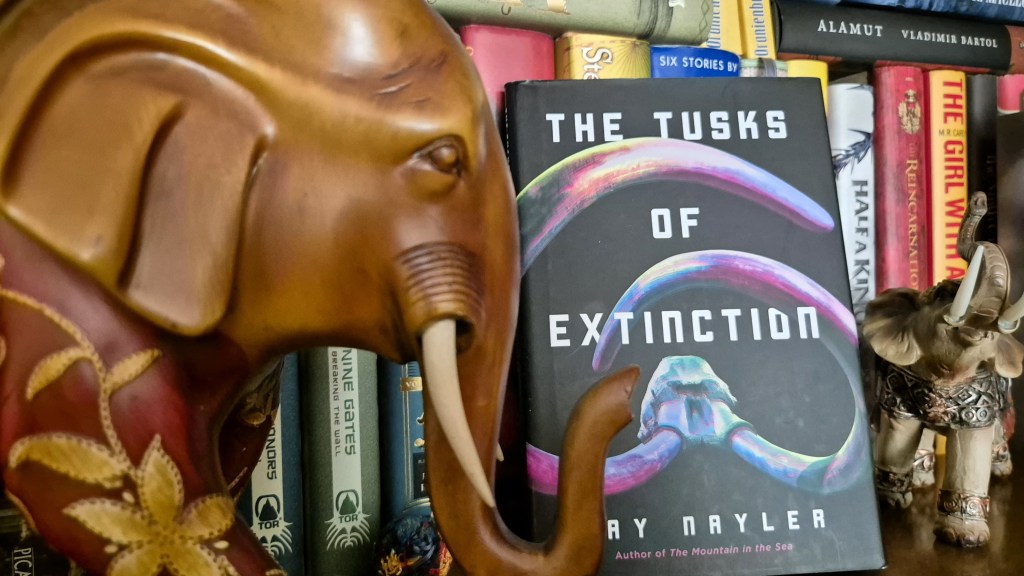 The Tusks of Extinction destaca-se sobretudo pelas ideias, centrando-se na recuperação de espécies, mas adicionando uma solução original para forçar a adaptação ao meio ambiente. Em termos narrativos é algo pausado e saltitante, desenvolvendo pouco as personagens, o que dificulta o envolvimento do leitor. Talvez seja a novidade que tenha ditado o prémio Hugo na categoria, ainda que tenha, até agora, apreciado mais outros nomeados como The Butcher of the Forest ou The Pratice, The Horizon and the Chain. Dos nomeados na categoria falta-me ler Navigational Entanglements (que já cá está na estante) e The Brides of High Hill (quinto volume da série, pelo que ainda vou demorar a lá chegar).