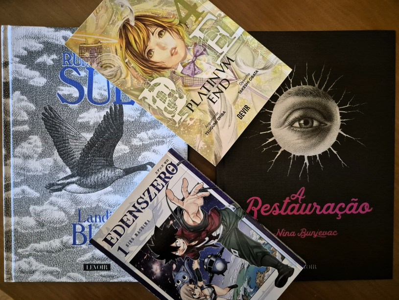 251 – Edens Zero – Vol. 1 – Hiro Mashima – Do mesmo autor de Fairy Tail e com personagens que recordam esta série, Edens Zero distingue-se por ser de ficção científica apresentando uma realidade onde vários mundos foram colonizados pelos seres humanos e onde existem espécies alienígenas com as quais convivem, bem como robots que parecem ter sentimentos. É nesta realidade que um rapaz vive, num planeta de diversão, sozinho com robots – a oportunidade de se afastar apresenta-se quando uma b-cuber (o equivalente a uma youtuber nesta realidade) resolve explorar o planeta e o encontra;
