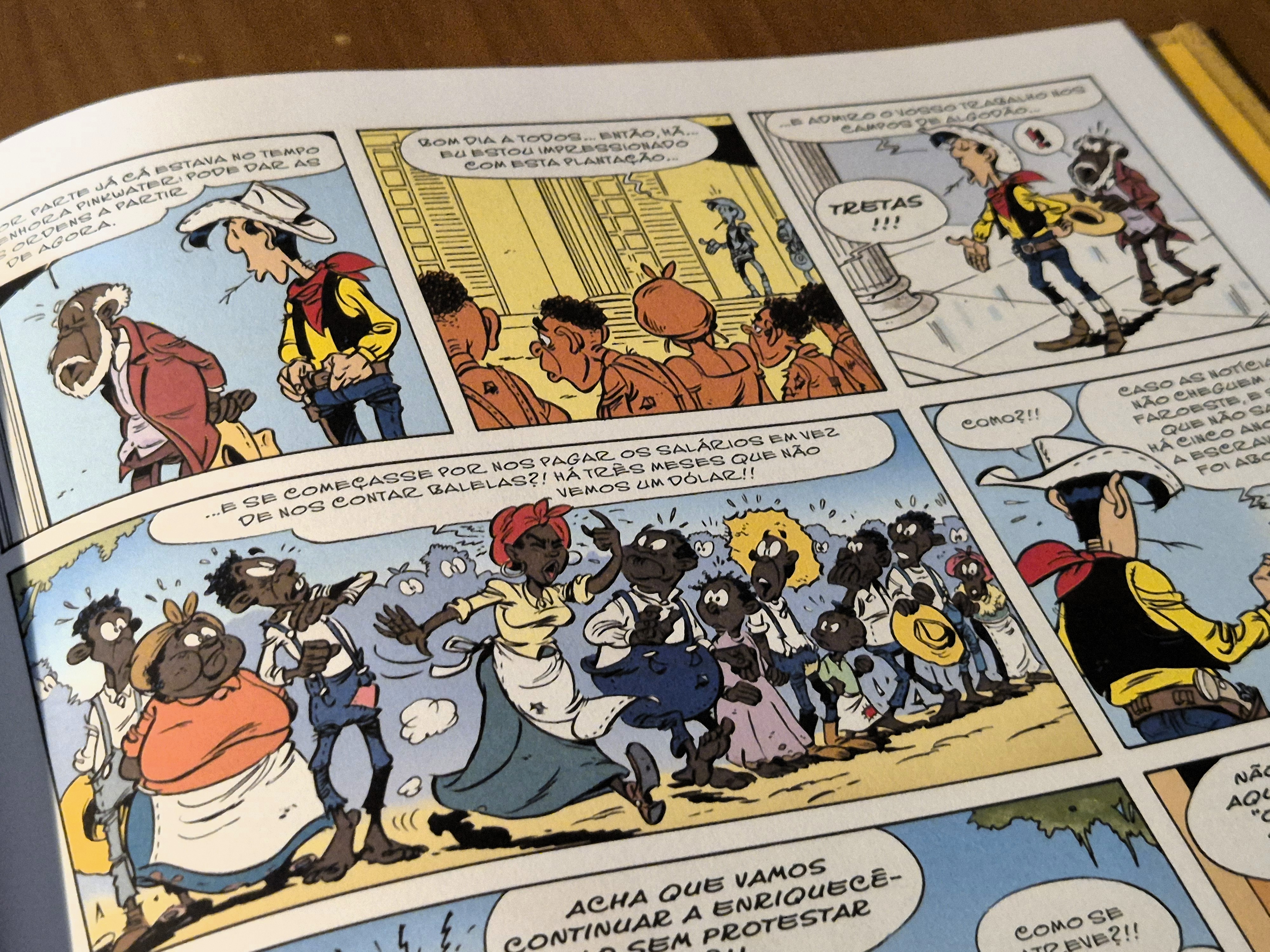Eis mais um álbum de Lucky Luke que só recentemente tive a oportunidade de ler. Lançado em 2020, é um dos álbums narrados por Jul, após Morris. É um álbum peculiar pela forma como integra referências históricas e refere algo que é raro ver nestas séries de Western – um foco nos afro americanos que permanecem nos estados do Sul, após a Guerra Civil.