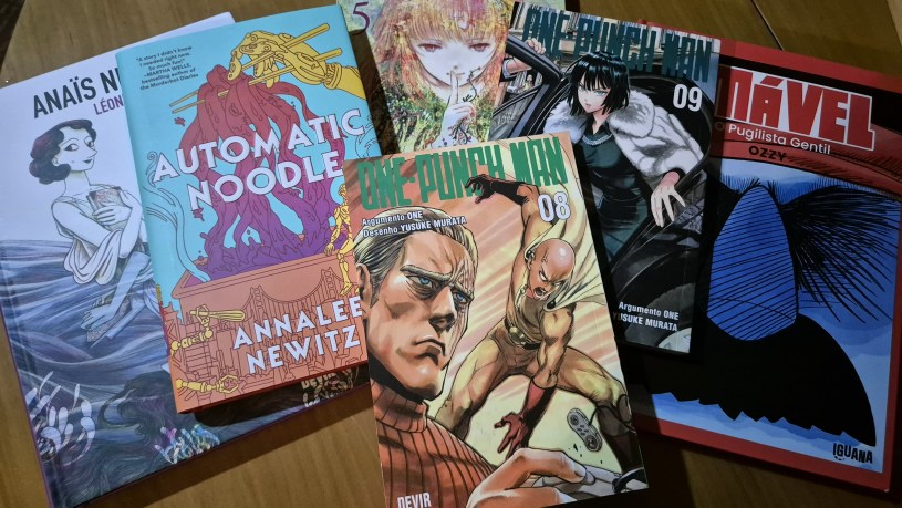 338 / 339 – One Punch Man 8 e 9 – Yusuke Murata – O herói continua a progredir lentamente, ao mesmo tempo que o seu sidekick trata de alguns monstros sem que nenhum deles seja reconhecido realmente pelos seus feitos. A narrativa continua a apresentar episódios irónicos onde o papel do herói é completamente desconsiderado – não que ele se importe muito na realidade;