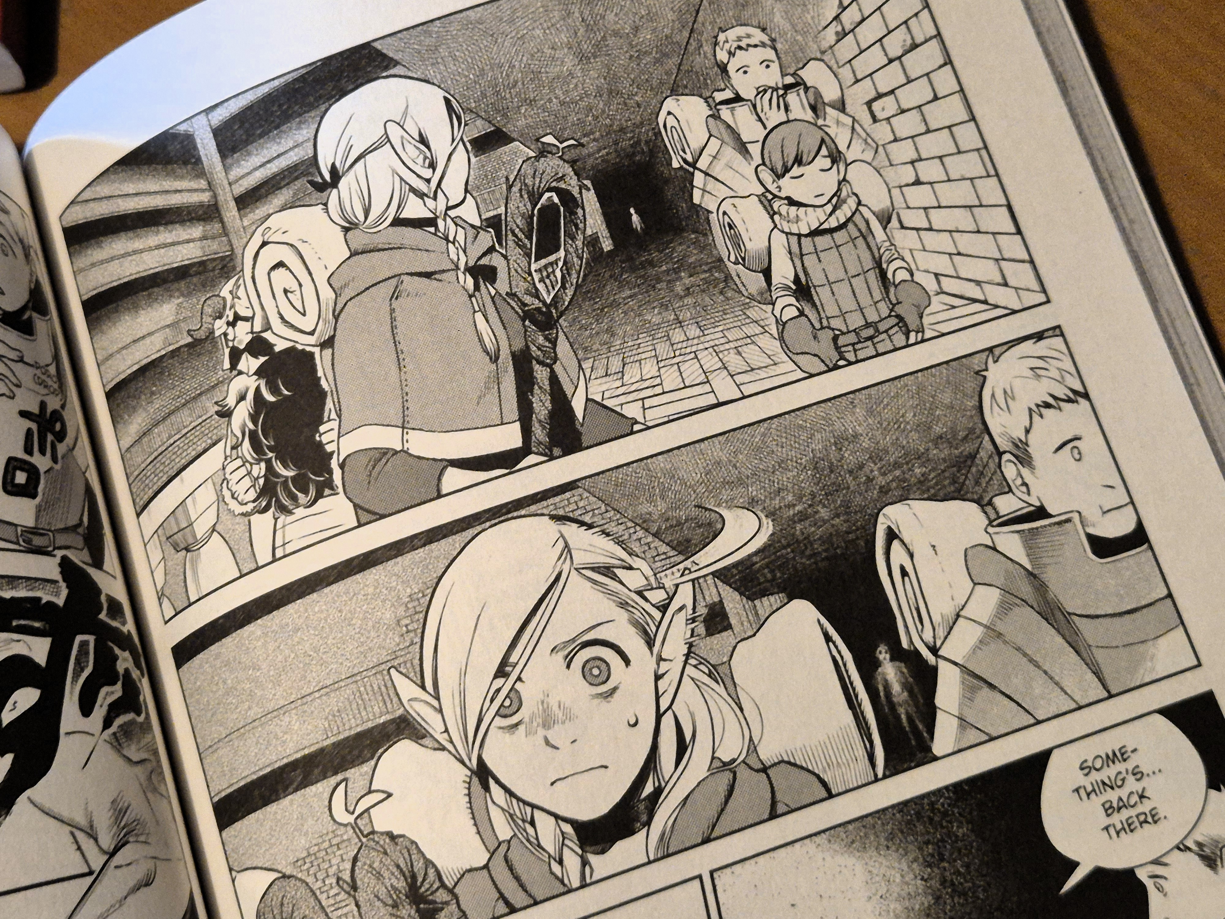 Após um primeiro volume onde se choca o leitor com o tipo de criaturas que se comem (como uma criatura bípede que é basicamente um cogumelo com pernas) a história começa a evoluir demonstrando outros elementos da complexa masmorra, bem como episódios que explicam um pouco sobre a origem da construção, bem como detalhes do mundo e sobre o passado dos aventureiros.