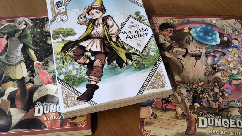 17 / 18 – Delicious in Dungeon – Vol. 8 e 9 – Ryoko Kui – O grupo acorda transformado! Literalmente! Sob o efeito de algo desconhecido assumem novas raças humanóides, mudando drasticamente de aparência. Enquanto tentam regressar à forma original, vão ter de enfrentar (e comer) mais monstros peculiares. Enquanto isso, no exterior das masmorras, os elfos aproximam-se e pretendem exterminar a masmorra que se torna cada vez mais perigosa – episódio que recorda um evento drástico um par de décadas antes;