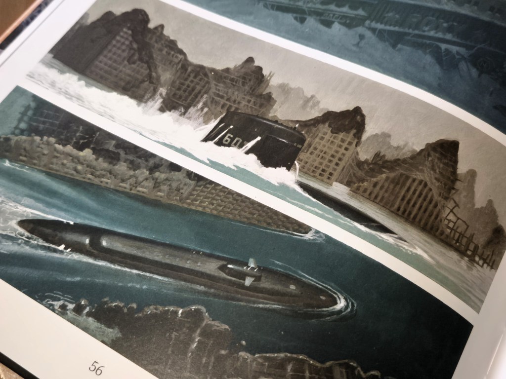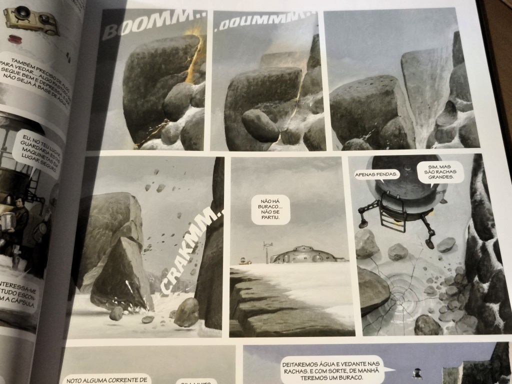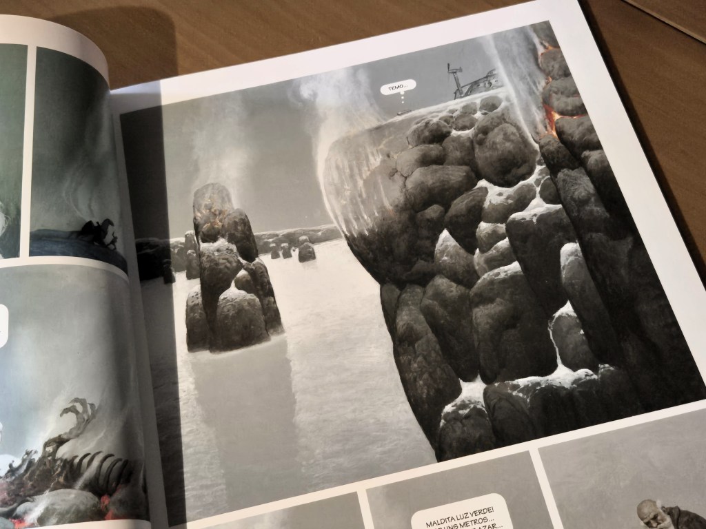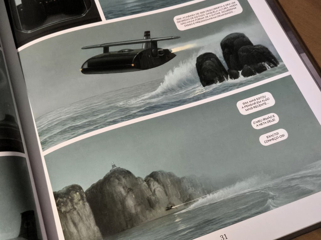 Tal como noutros volumes da série, o autor aproveita a premissa para desenhar cenários impossíveis e fascinantes. Neste caso, desenvolvendo o ambiente negro que a história permite, mas também construções típicas de ficção científica com cidades de formas estranhas ou submarinos de contornos mais actuais, com cenários particularmente opressivos e detalhados.