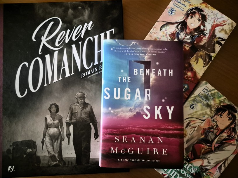 44 – Beneath the sugar sky – Seannan McGuire – O terceiro volume da série Wayward Children começa por nos apresentar uma criança nova que, no mundo fantástico que visitou, poderia ser ela mesma, sem que os seus defeitos físicos aparentes fossem considerados importantes. Ela é uma das três crianças que assiste à chegada de Rini dos céus, uma criança nascida num dos mundos fantásticos onde tudo é feito de doces, e que procura a mãe – uma das jovens que terá sido assassinada no primeiro volume. A partir daqui, os jovens partem em demanda, para tentar trazer a jovem à vida, por forma a que Rini possa nascer. Não, não estou a ser inconsistente – a fluidez do tempo difere de mundo para mundo e noutro mundo pode ser simultaneamente passado e futuro.
