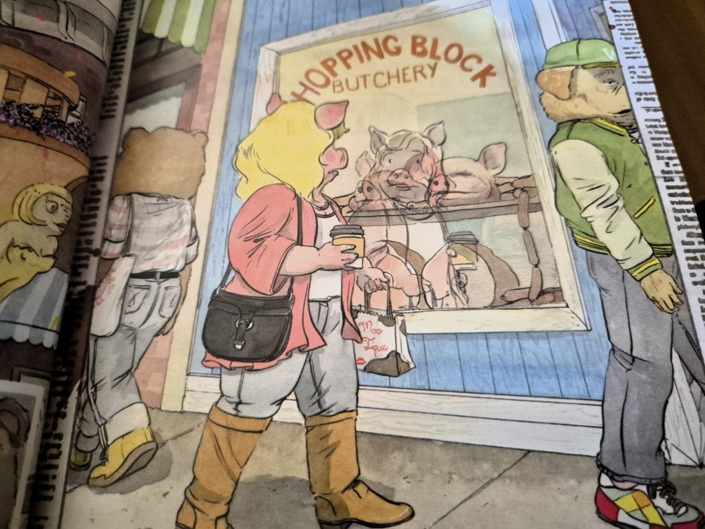 O aspecto das personagens, caracterizadas com animais de aspecto antropomórfico, os tons pastéis usados e o tipo de desenho recordam as típicas histórias infantis. Este ambiente choca com as acções protagonizadas, onde vemos cabeças cortadas ao meio, cérebros expostos e pescoços degolados. O contraste é simultaneamente curioso e divertido, uma subversão ao estilo visual que se transforma num dos pontos fortes deste volume.