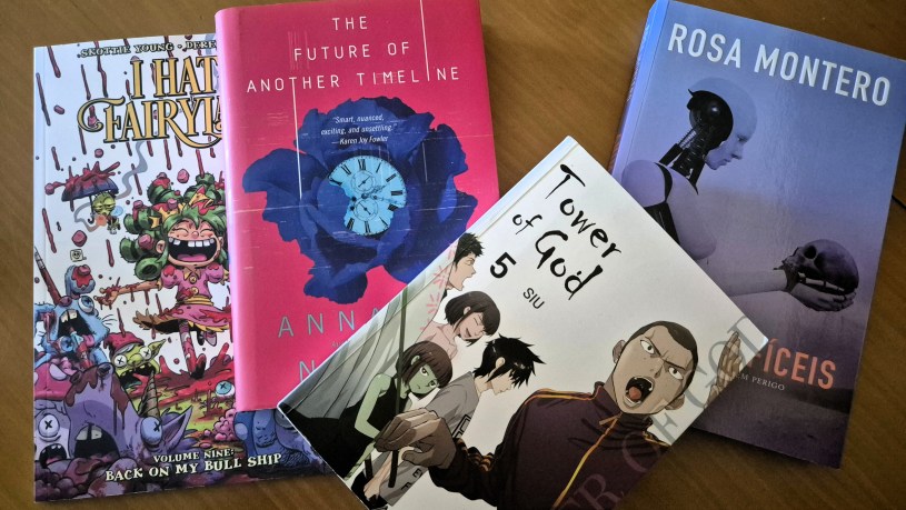 108 – The Future of Another Timeline – Annalee Newitz – Apesar de ter gostado bastante do livro, foi uma das leituras que mais me custou fazer. A narrativa centra-se numa académica que realiza viagens no tempo e que, conjuntamente com outro grupo de mulheres, tenta mudar o passado para garantir os direitos das mulheres. As viagens no tempo possuem detalhes diferentes do usual e a exploração do tema principal mostram como a violência contra a população feminina é normalizada em vários contextos.